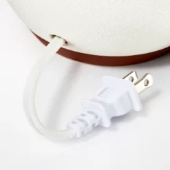 Add timeless charm to your indoor lighting with this Ceramic Table Lamp with Gingham Print Pleated Shade from Threshold™ designed with Studio McGee. This unique table lamp features a white and brown ceramic base, and it comes with a pleated empire shade with a gingham pattern for classic style. The on/off light setting with a turn-knob rotary switch allows for easy operation. Place it on the side table or console table in your living room for warm, ambient lighting.