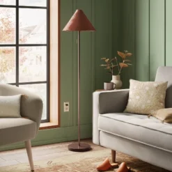 Illuminate your home in luxurious style with the Floor Lamp with Leather Shade from Threshold™. This brown floor lamp features a leather empire shade that stands on a round base with a long neck for a sleek look. Designed with a one-way on/off light setting, it has a pull chain switch for easy operation and a convenient 5-foot power cord.